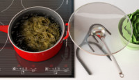 Sometimes finding room to place hot cookware lids and utensils while cooking can be frustrating. People may lack an area to place the products other than a countertop. If a hot lid is placed on a smooth, glass-top stove it can create a vacuum-like suction that can be strong enough to crack and break the top. Placing dirty utensils on the counter can lead to messes that need to be cleaned up after cooking.